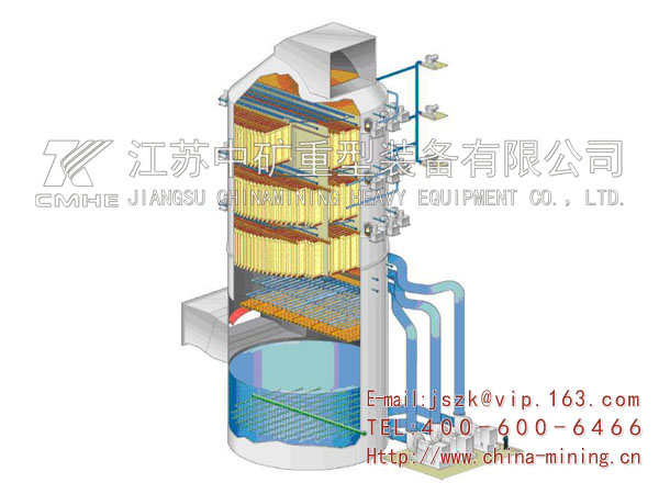 (10)布置靈活多樣:江蘇中礦擁有立式濕電除塵器和臥式濕電除塵器的成功工程經(jīng)驗(yàn),根據(jù)煙氣特性、排放要求、現(xiàn)場(chǎng)場(chǎng)地情況,靈活按立式和臥式來布置,也可將濕式電除塵器布置在脫硫塔的上部(頂置式),以節(jié)省場(chǎng)地。